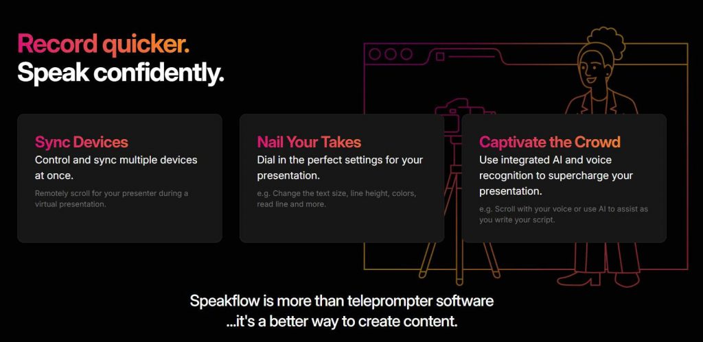 Speakflow represents the next evolution of teleprompter technology — fast, flexible, and intuitive. It’s more than a script reader; it’s a complete communication platform built for creators who demand both efficiency and precision.